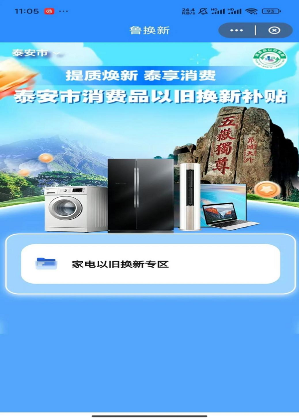 泰安市家電“以舊換新”補(bǔ)貼活動(dòng)已正式啟動(dòng)。廣大消費(fèi)者可登錄云閃付APP“魯換新”小程序,領(lǐng)取補(bǔ)貼券