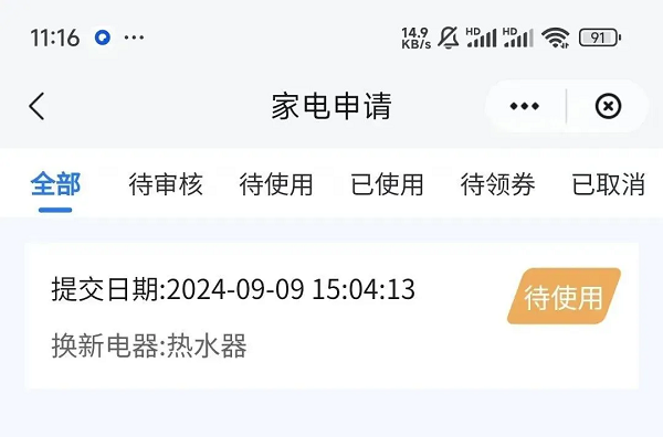 【查看補(bǔ)貼券】用戶點(diǎn)擊進(jìn)入“補(bǔ)貼券狀態(tài)查詢”界面,可以查看已領(lǐng)取的補(bǔ)貼券及其狀態(tài)。